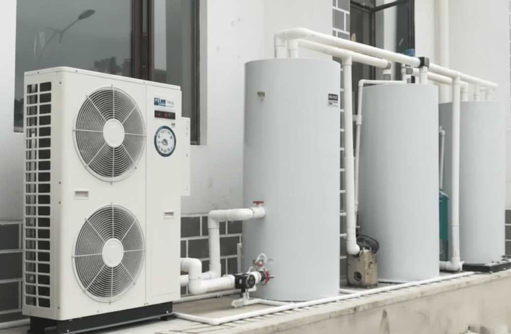 A Central Hot Water System works through a large insulated hot water service tank, where water is continuously heated by advanced heat pumps to maintain the desired temperature.